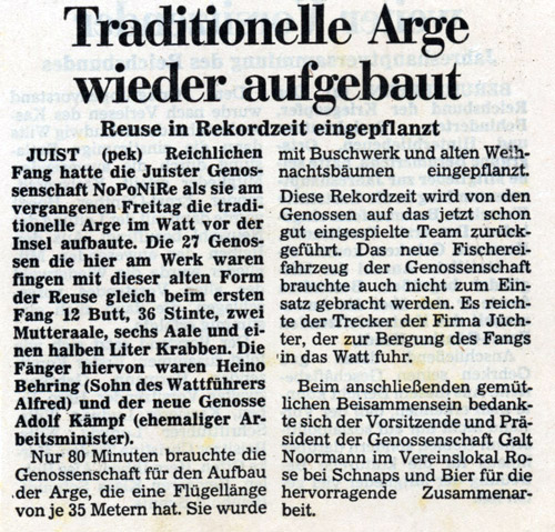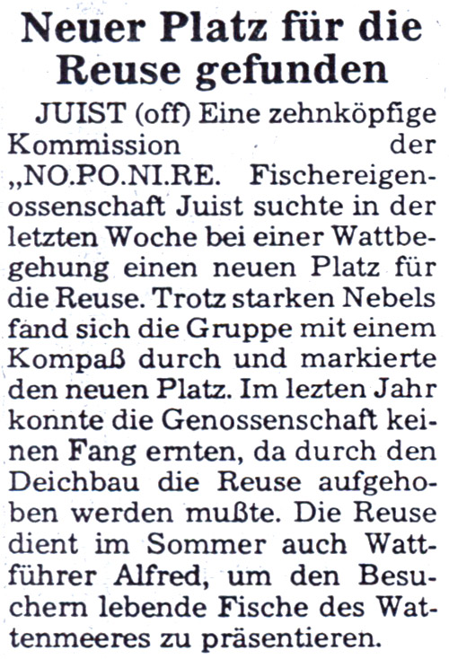 Jedes Jahr im Frühjahr wird eine Reuse im Watt aufgestellt