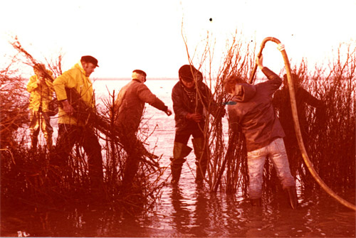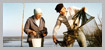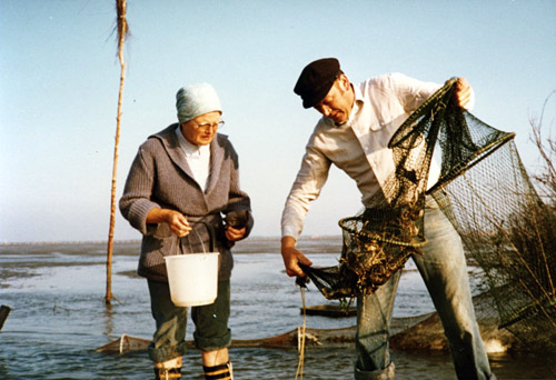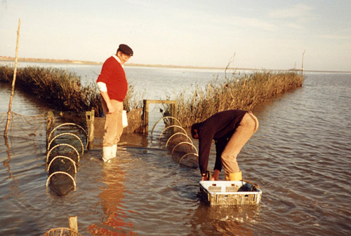 und holen den gefangenen Fisch aus der Reuse. Dies ist